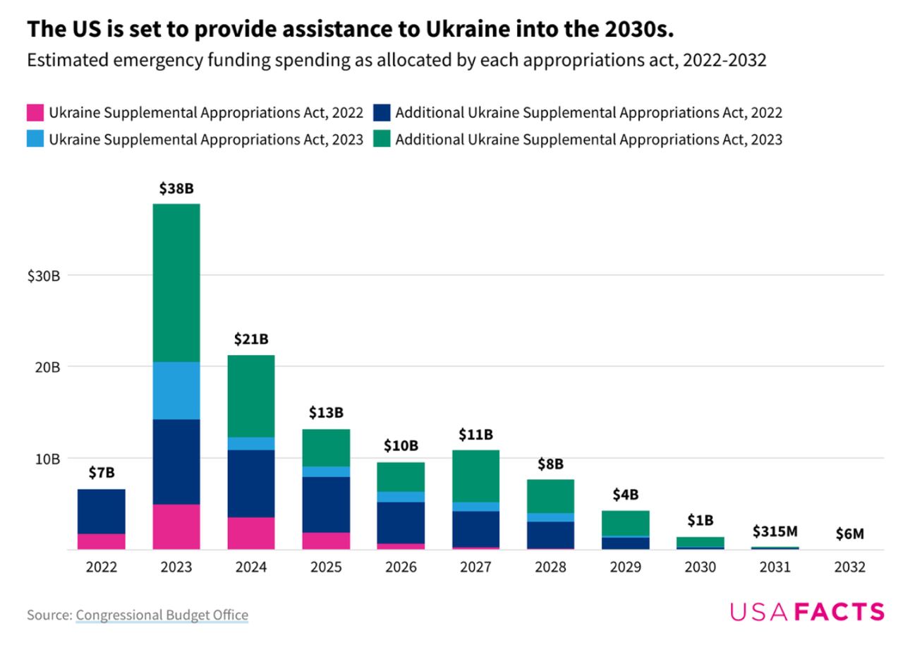 The United States alone has appropriated about $115 billion in emergency funding to support Ukraine since last February, according to USAFacts. Some aid falls under a lend-lease program President Joe…