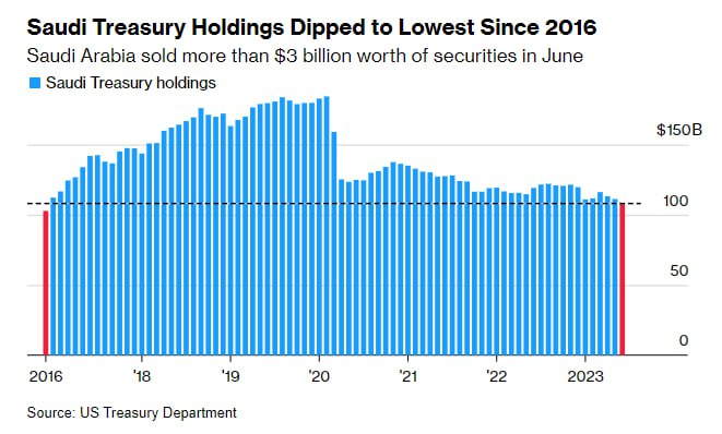 Saudi Arabia’s holdings of US Treasury bonds fell to the lowest level in more than six years. The country sold more than $3 billion in US government debt in June,…