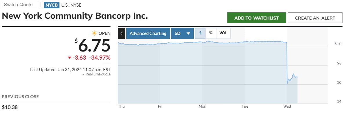 New York Community Bank #NYCB shares fell more than 35% today. The bank reported an unexpected loss for the fourth quarter and also cut its dividends. This is the same…