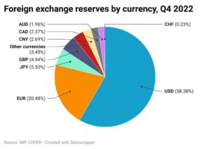 The dollar is being gradually abandoned now; it used to account for about 70% of the global forex reserves, but now is slightly below 60%, she stated.