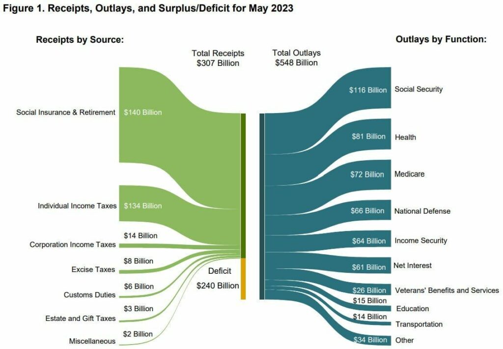 ◾️ Government spending in May jumped 20% to $548 billion, up from $455 billion in the same month a year ago.