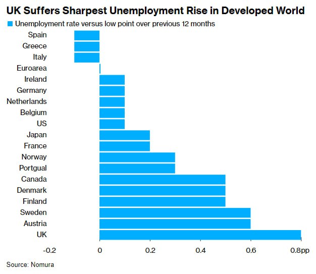So now since hitting a near half-century low of 3.5% last year, unemployment in the UK has risen by 0.8 percentage points to 4.3%, pushing past the 0.5 point red line stipulated by the rule.