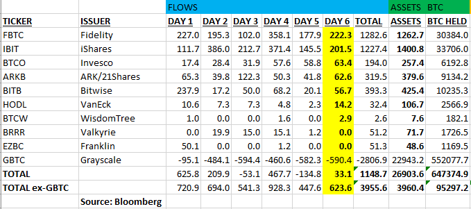 In data disclosed by Eric Balchunas, a senior ETF analyst at Bloomberg, the capital influx into the recently launched ETFs has surpassed the outflows from the Grayscale Bitcoin Trust (GBTC). GBTC’s assets under management have decreased by $2.8 billion in the first six days of trading.