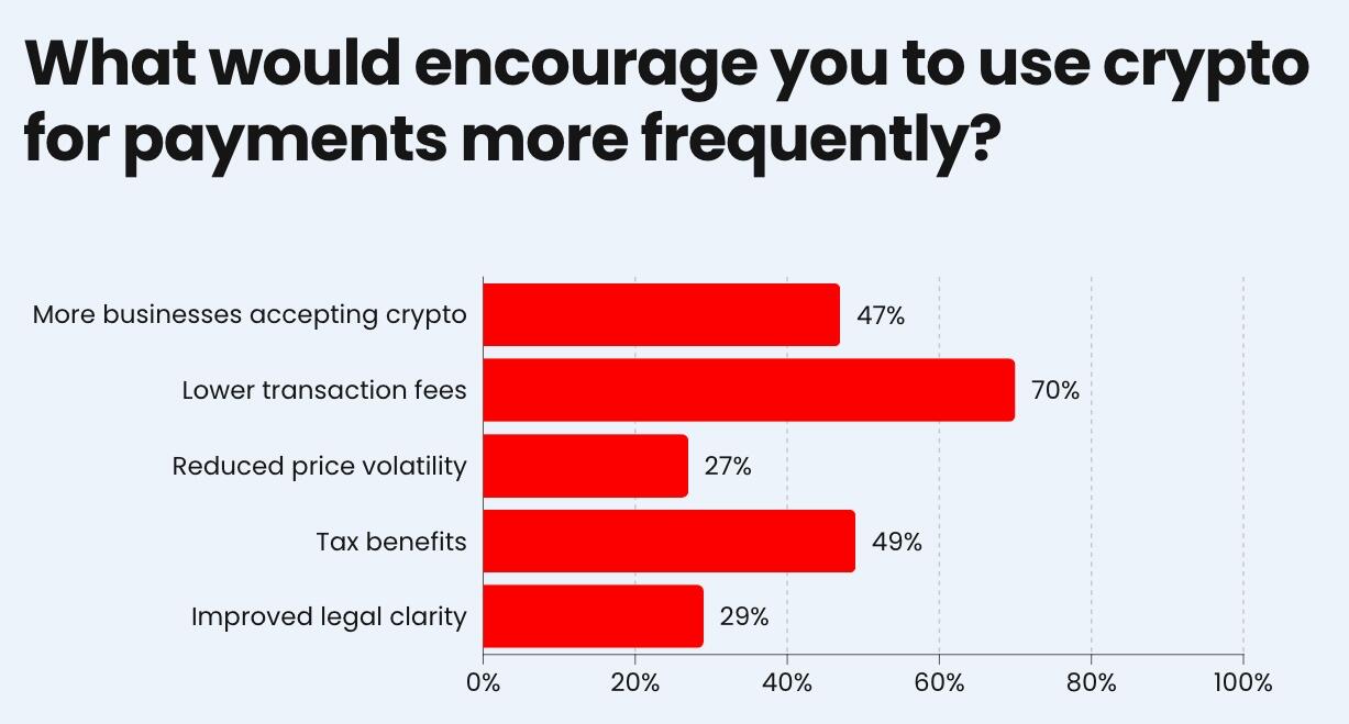 The data aligns with Brighty’s survey results, as at least 70% of respondents cited lower transaction fees as a reason for using crypto for payments more frequently.