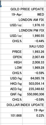 Gold spot price Update 20.04.2023